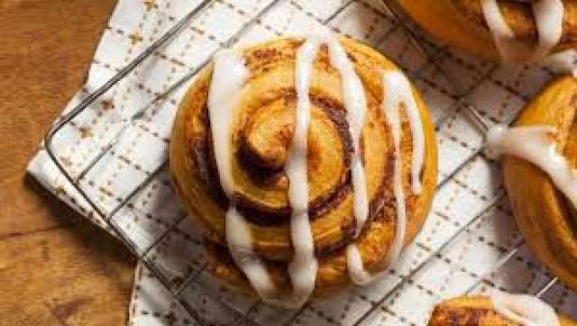 رشي القرفة والسكر فوق كل قسم ثم لفي على هيئة اسطوانة، وقسمي كل واحدة قسمين.