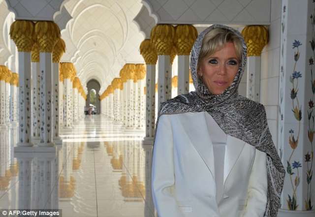 تداول نشطاء على مواقع التواصل الاجتماعي لـ"بريجيت ماكرون" زوجة الرئيس الفرنسى بالحجاب فى مدينة "أبو ظبي" بدولة الإمارات العربية المتحدة، مرتدية الحجاب، أثناء زيارتها لمسجد الشيخ زايد الكبير.