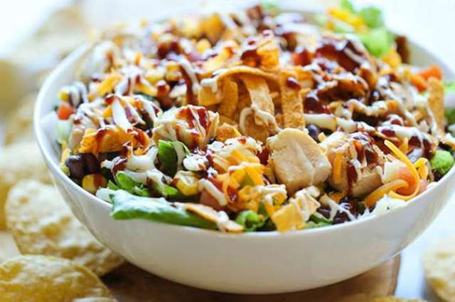 سلطة الباستا بالدجاج وصوص الرانش