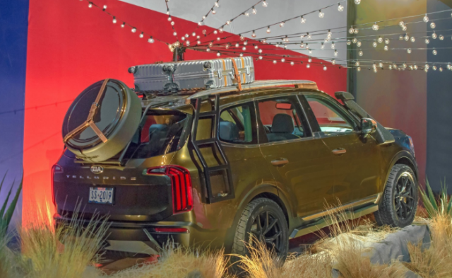 لم تقل كيا الكثير عن تيلورايد الإنتاجية، ولكن النسخة المعدلة هنا تمتلك مصدات خاصة، عتبات جانبية وعرة، ونش أمامي، لمسات للطرق الوعرة بينها جنوط 20 إنش بإطارات ضخمة.