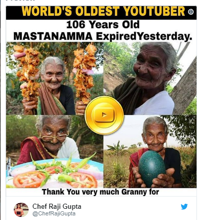 توفيت المعمرة الهندية، ماستاناما، التي كانت تعد أكبر "يوتيوبر" في العالم، عن عمر ناهز 107 أعوام.