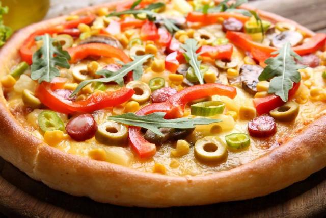 عمل بيتزا السوسيس بالزيتون والفلفل الملون