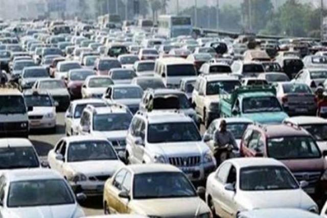 كثافات مرورية أعلى طريق السويس بسبب حادث تصادم سيارتين