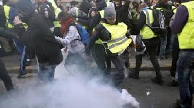 إطلاق الغاز المسيل للدموع على متظاهري السترات الصفراء في فرنسا