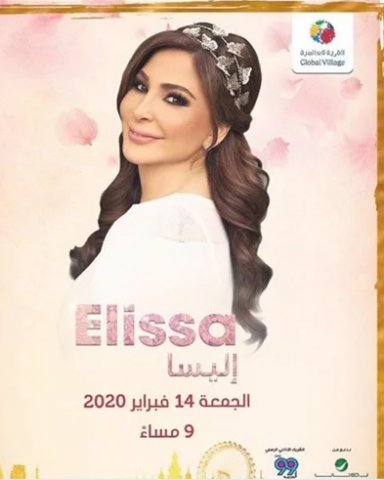 وكتبت اليسا على البوستر الدعائي للحفلة :" لا أستطيع الانتظار لكي القاكم يوم 14 فبراير في القرية العالمية بـ دبي".