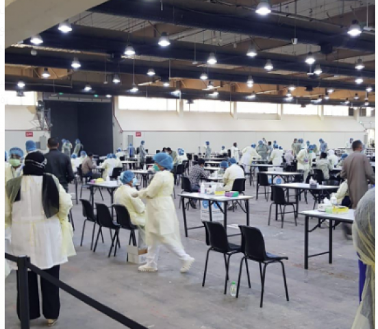 في أعقاب الدعوة التي وجهتها وزارة الصحة الكويتية للوافدين القادمين من عدة دول عربية واجنبية لمراجعتها لإجراء فحوصات تتعلق بفيروس كورونا، شهدت أرض المعارض بالعاصمة الكويتية إقبالا كثيفا للوافدين منذ الساعات الاولي صباح اليوم الخميس في استجابة سريعة تظهر تعاون الكويتيين والوافدين معا للسيطرة علي انتشار الفيروس خاصة بعد اعلان تعليق معظم رحلات الطيران التجاري وتعطيل العمل في عديد من اجهزة الدولة لمواجهة اتساع حالات المصابين .
