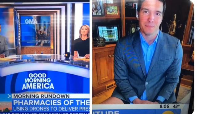 مراسل قناة "ABC News" الأمريكية الشهيرة ويل رييف يعيش نفس الحالة، فهو يعمل أيضاً من منزله، لكنه يبدو أنه نسي شيئاً أكثر أهمية من عدد الأيام: "البنطلون".