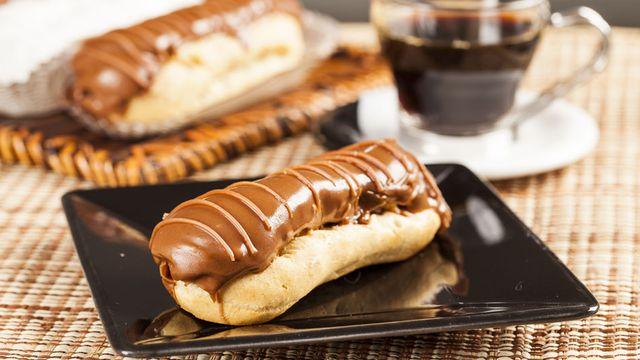 أخرجي الصينيّة من الفرن وضعهيا جانبا حتى يبرد الإكلير، ثمّ خذي كل حبة وافتحيها من الجانب وأدخلي الكاسترد فيها، أوالفراولة، أو الشوكولاته بحسب الرغبة. أحضري الشوكولاته و غطّيها من الأعلى.