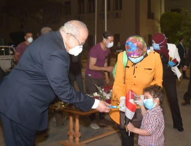 وكان في استقبال أفواج العائدين، الدكتور محمد عثمان الخشت رئيس جامعة القاهرة، والذي اطمأن على حسن استقبال جميع العائدين، وتعقيمهم وتعقيم أمتعتهم من خلال كبائن التعقيم الذاتي المتوفرة على أبواب ومداخل المدينة، وتسكينهم، وتوفير كميات كبيرة من المأكولات والمشروبات، وتوفير سبل الراحة لهم.