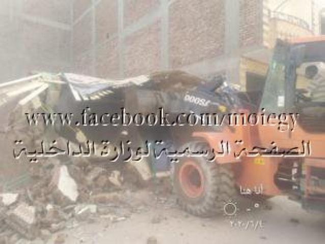 تنفيذاً لتوجيهات القيادة السياسية بعدم التهاون والتصدى بحسم لحالات الإستيلاء والتعدى والبناء على أراضى أملاك الدولة والعمل على سرعة إستردادها تعزيزاً لمبدأ سيادة القانون ، فقد واصلت أجهزة وزارة الداخلية بمعاونة الأجهزة الإدارية بمختلف المحافظات تفعيل ضوابط تنفيذ قرارات الإزالة على كافة التعديات الواقعة على الرقعة الزراعية وأملاك الدولة ومنافع الرى والصرف ومجرى نهر النيل والتصدى لمحاولات البعض لإستغلال فترات حظر تحرك المواطنين لإرتكاب تلك المخالفات ، حيث قامت أجهزة الوزارة بتوجيه حملات مكبرة لتأمين تنفيذ قرارات إزالة تلك التعديات.. وقد أسفرت جهودها خلال 24 ساعة عن تحقيق النتائج الإيجابية التالية:-