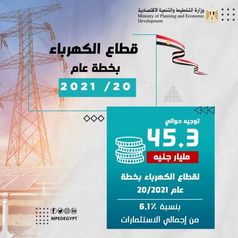 أعلنت وزارة التخطيط والتنمية الاقتصادية فى تقرير لها الملامح الأساسية لمستهدفات قطاع الكهرباء والطاقة المتجددة بخطة عام 20/2021.