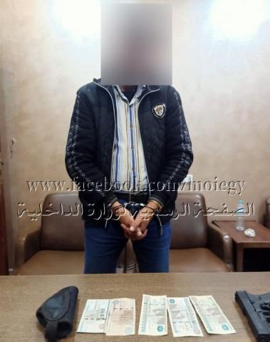 عقب تقنين الإجراءات أمكن ضبطه وبحوزته ( طبنجة صوت – هاتف محمول – مبلغ مالى) ، وبمواجهته بما جاء بأقوال المُبلغة وما توصلت إليه التحريات ، إعترف بإرتكابه للواقعة على النحو المُشار إليه .