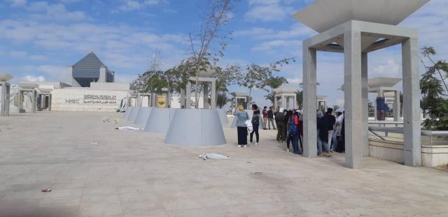 هيئة المتحف القومي للحضارة المصرية تضيف لمسة جمالية على المدخل الرئيسي للمتحف قبيل افتتاحه