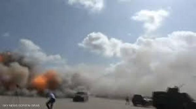 وثق مقطع فيديو نشرته وكالة الأنباء الفرنسية سقوط مقذوف على مطار عدن ظهر اليوم الأربعاء، وتسبب في مقتل وجرح عشرات الأشخاص.
