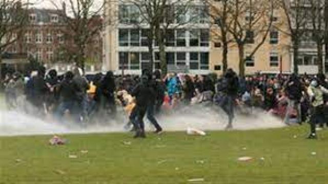 استخدمت الشرطة الهولندية خراطيم المياه لتفريق الأشخاص الذين تجمعوا في أمستردام اليوم السبت للاحتجاج على استمرار القيود التي فرضتها الحكومة للحد من انتشار فيروس كورونا.