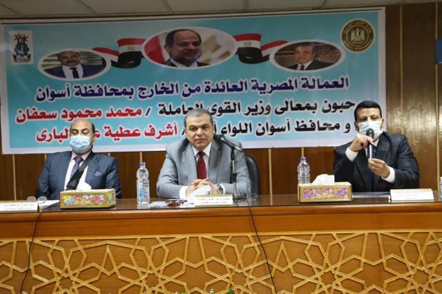 سعفان ومحافظ أسوان يلتقيان العمالة العائدة من الخارج لمساعدتهم في عمل مشروعات صغيرة