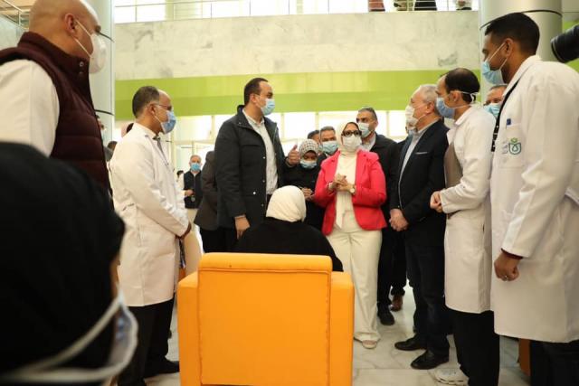 وزيرة الصحة تتفقد قسم العزل بالمستشفى.. وتطمئن على الحالة الصحية لمرضى فيروس كورونا