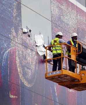 نهاية حقبة.. إزالة صورة ميسي من واجهة ملعب ”كامب نو” معقل برشلونة| فيديو وصور