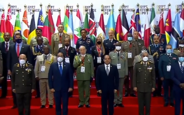 الرئيس السيسى يلتقط صورة تذكارية مع المشاركين في المعرض الدولى ”إيديكس 2021” للصناعات العسكرية