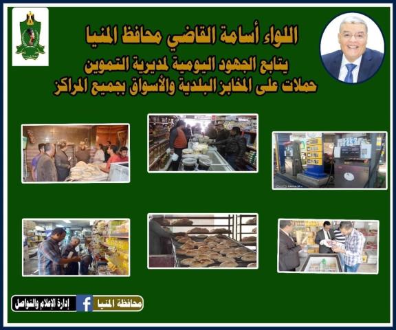 وجه اللواء أسامة القاضي محافظ المنيا، رؤساء الوحدات المحلية بنطاق المحافظة، بالاستمرار في تنفيذ حملات المتابعة الميدانية للحالة العامة للأسواق والمخابز البلدية وكافة المنشآت الغذائية، وذلك بهدف إحكام الرقابة على السلع والمواد الغذائية المعروضة على المواطنين للتأكد من سلامة الغذاء حرصا على تحقيق الصالح العام للمواطنين.