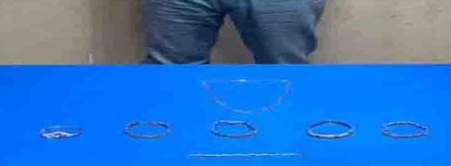 على الفور إنتقلت قوة أمنية من وحدة مباحث القسم وأمكن ضبط المذكور وتبين أنه (عاطل ، مقيم بدائرة قسم شرطة المرج) ، وضبط بحوزته مشغولات ذهبية عبارة عن ( 5 غويشة - 3 خاتم - أسورة – سلسلة – أنسيال) مجهولين المصدر .
