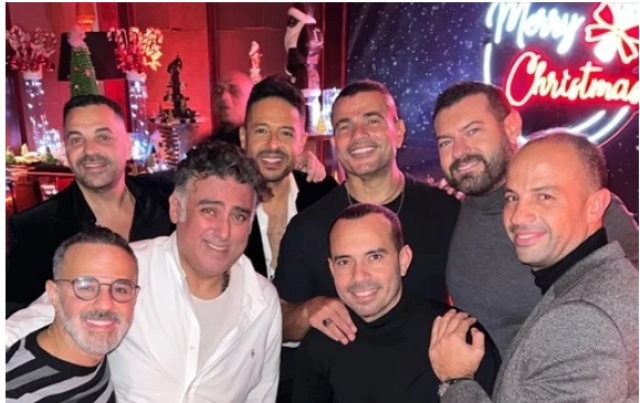 شارك المطرب عمرو دياب ومحمد حماقى وعمرو يوسف وتامر حبيب وطارق العريان فى احتفال بعيد الكريسماس فى أحد اماكن السهر.