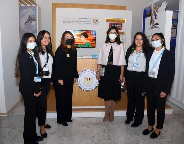 السفيرة نبيلة مكرم والدكتورة غادة والي تتفقدان جناح وزارة الهجرة بمنتدى شباب العالم