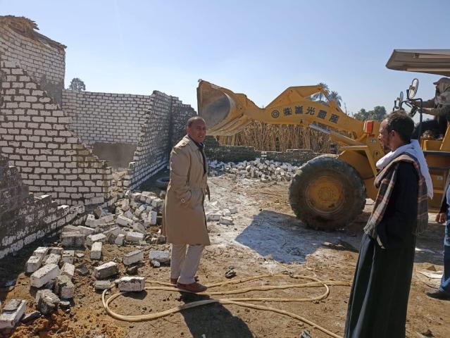 كما نفذت الوحدة المحلية بدير البرشا بمركز ملوي أعمال إزالة 5 حالات مباني وتم إزالتها في المهد.