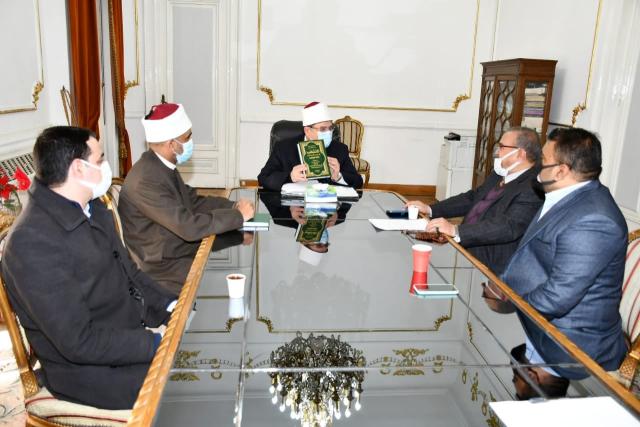 في إطار الدور الريادي لجمهورية مصر العربية في نشر الفكر الوسطي المستنير بمختلف لغات العالم ، وفي إطار جهود وزارة الأوقاف المصرية وعنايتها الواسعة بحركة الترجمة إلى اللغات المختلفة ، ولا سيما ترجمة معاني القرآن الكريم ، اجتمع معالي أ.د/ محمد مختار جمعة وزير الأوقاف باللجنة المكلفة بترجمة كتاب "المنتخب" إلى اللغة العبرية اليوم السبت 26/ 2/ 2022م بمقر المجلس الأعلى للشئون الإسلامية.