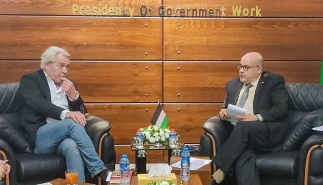 بحث عصام الدعليس رئيس متابعة العمل الحكومي في قطاع غزة مع المنسق الأممي الخاص لعملية السلام في الشرق الأوسط تور وينسلاند مستجدات الأوضاع الإنسانية والسياسية في القطاع.