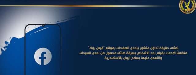 كشف حقيقة منشور متضمناً الإدعاء بقيام أحد الأشخاص بسرقة هاتف محمول من إحدى السيدات والتعدى عليها بسلاح أبيض بالأسكندرية