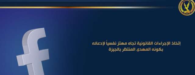 فى إطار جهود أجهزة وزارة الداخلية لكشف ملابسات تداول مقطع فيديو على موقع التواصل الإجتماعى "فيس بوك" متضمناً ظهور أحد الأشخاص يدعى كونه المهدى المنتظر ونزول الوحى عليه بالجيزة .