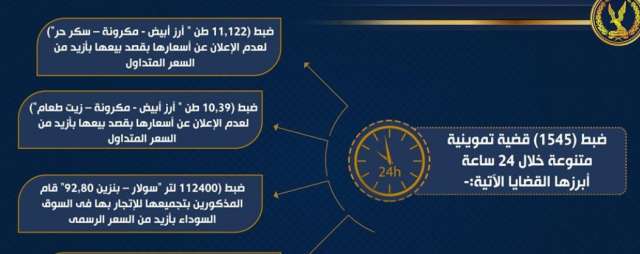 ضبط 1545 قضية تموينية متنوعة من بينهم قضايا حجب سلع غذائية