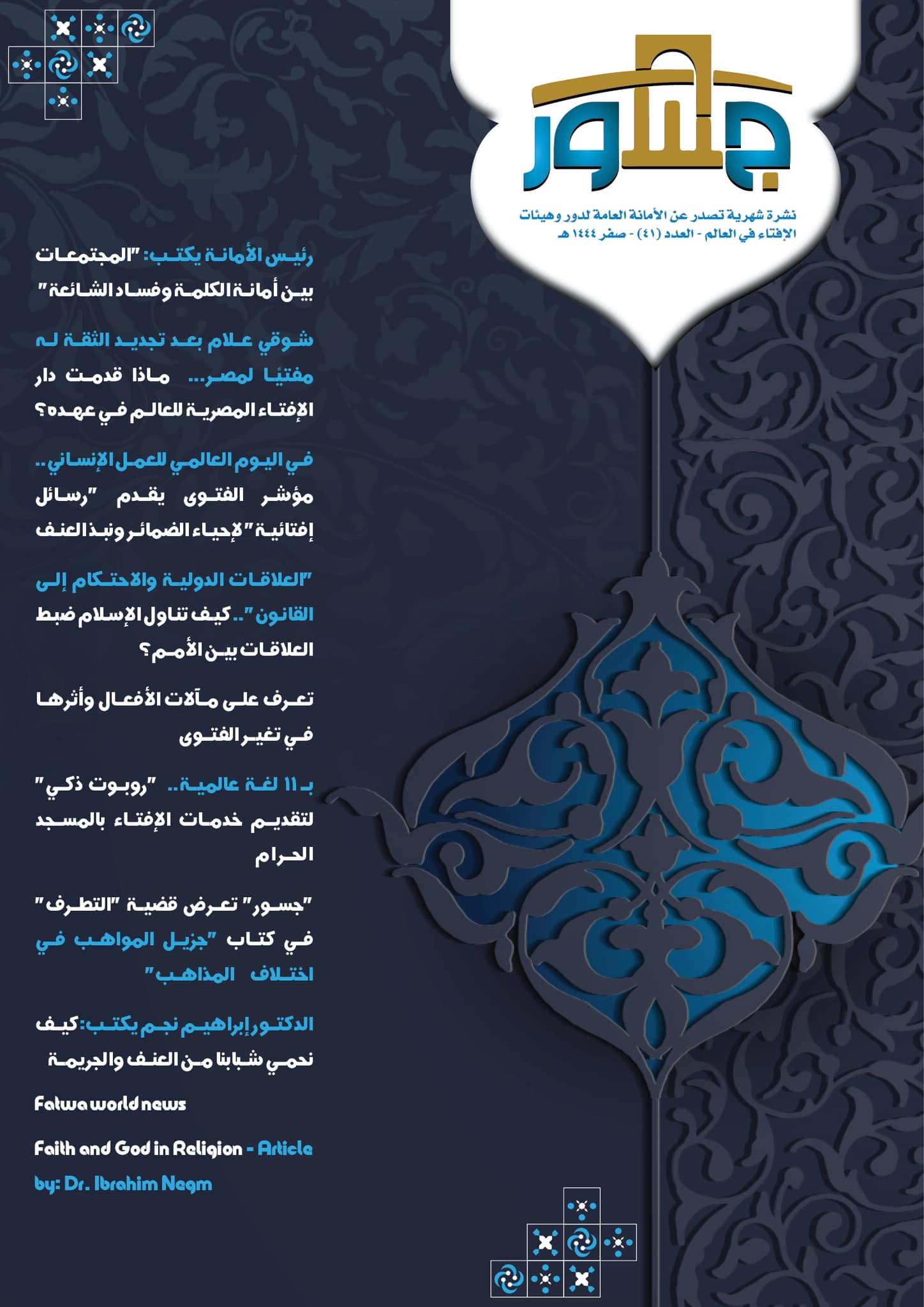 أمانة الإفتاء العالمية تصدر عدد شهر صفر من ”جسور”
