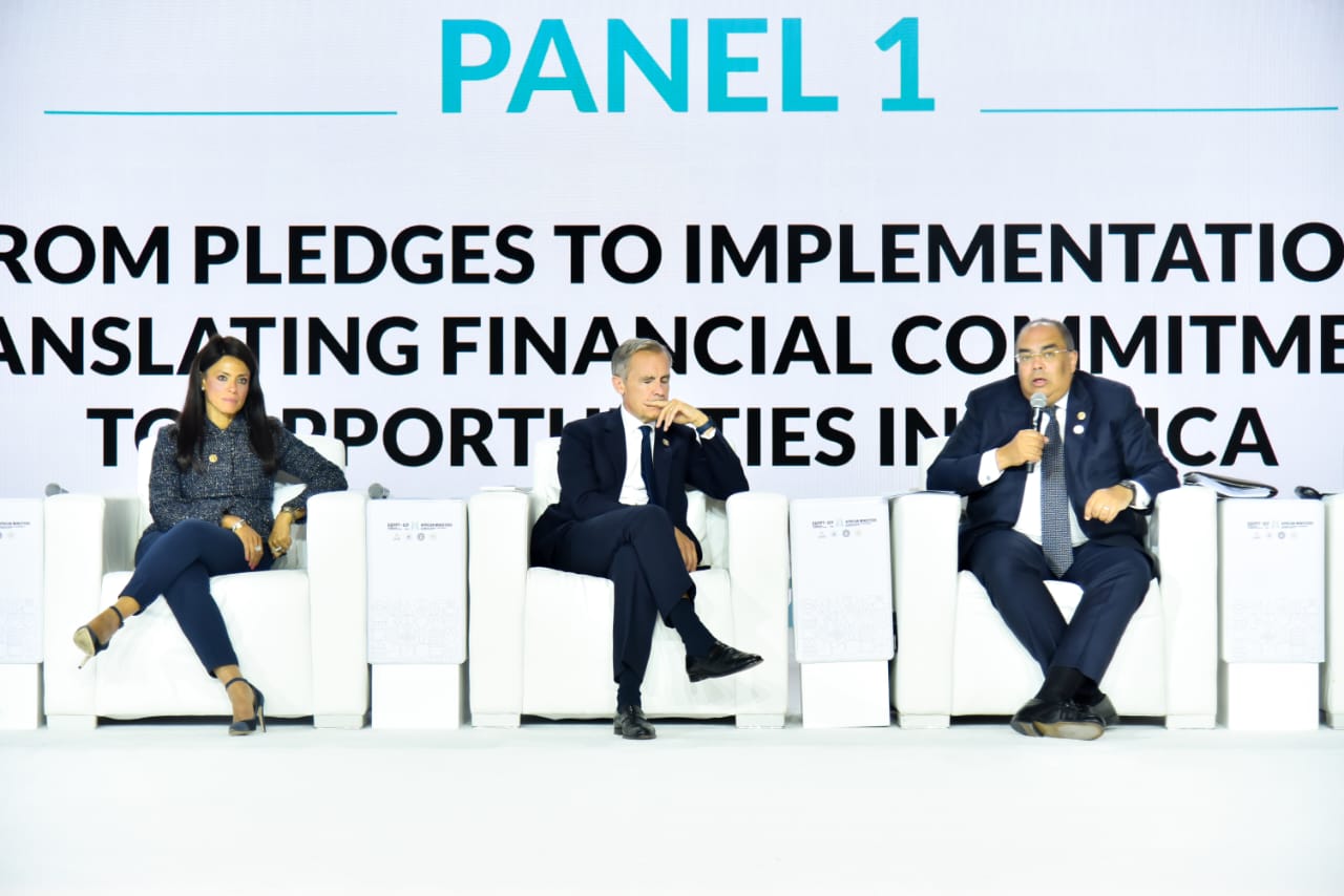 جاء ذلك خلال كلمته التي ألقاها بجلسة حول "الانتقال من التعهدات الى التنفيذ والتطبيق العملي وتحويل الالتزامات المالية الى فرص بافريقيا " بحضور وزيرة التعاون الدولي الدكتورة رانيا المشاط و المبعوث الخاص للأمم المتحدة المعني بالعمل والتمويل المناخي مارك كارني، والدكتورة كيري آن جونز ، نائبة الأمين العام لمنظمة التعاون الاقتصادي والتنمية؛ والدكتورة زينب شمسنا أحمد وزيرة المالية والتخطيط القومي بنيجيريا، وجاءت الجلسة ضمن فعاليات اليوم الأول لمنتدى مصر للتعاون الدولي والتمويل الانمائي واجتماع وزراء البيئة والاقتصاد والمالية الافارقة تحت رعاية رئيس الجمهورية الرئيس عبد الفتاح السيسي.