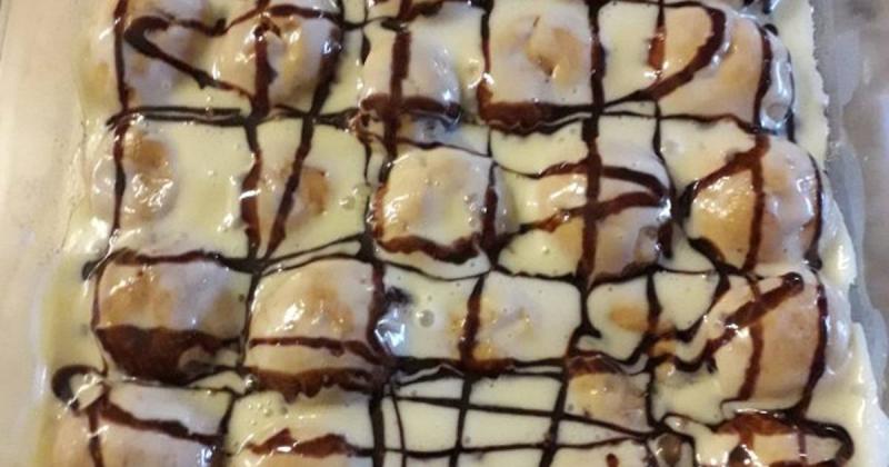 ضعي باقي كمية الحليب المكثف مع الجبن الكيري في قدر على نار متوسطة حتى يغلي، ثم أخرجي الصينية من الفرن واتركي الصامولي ليبرد، ثم اسكبي الصلصة عليه وزينيه بصوص الشوكولاتة وقدميه على الفور.