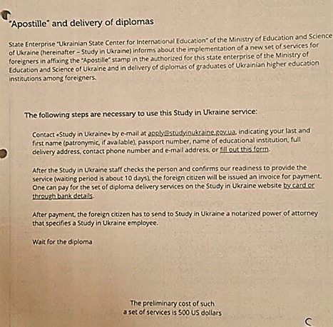 هناك حاجة لتقديم الطلاب الراغبين في استخراج شهادات التخرج الخاصة بهم لمخاطبة جامعاتهم بشكل مباشر لطلب استخراج أوراق التخرج عبر البريد الإلكتروني مباشرة من الجامعة، على أن تتضمن رسالتهم الإلكترونية كافة التفاصيل الخاصة بالشهادة، والتخصص، والاسم الكامل للخريج والتواريخ المتعلقة بذلك علي الرابط التالي: APPLY@STUDYINUKRAINE.GOV.EG