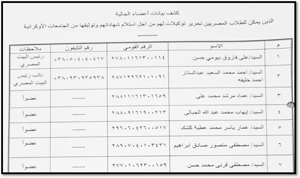 ويمكن لهؤلاء الطلاب التواصل مباشرة مع السادة ممثلي الجالية المصرية الواردة أسماؤهم من السفارة المصرية بأوكرانيا على الرابط التالي: