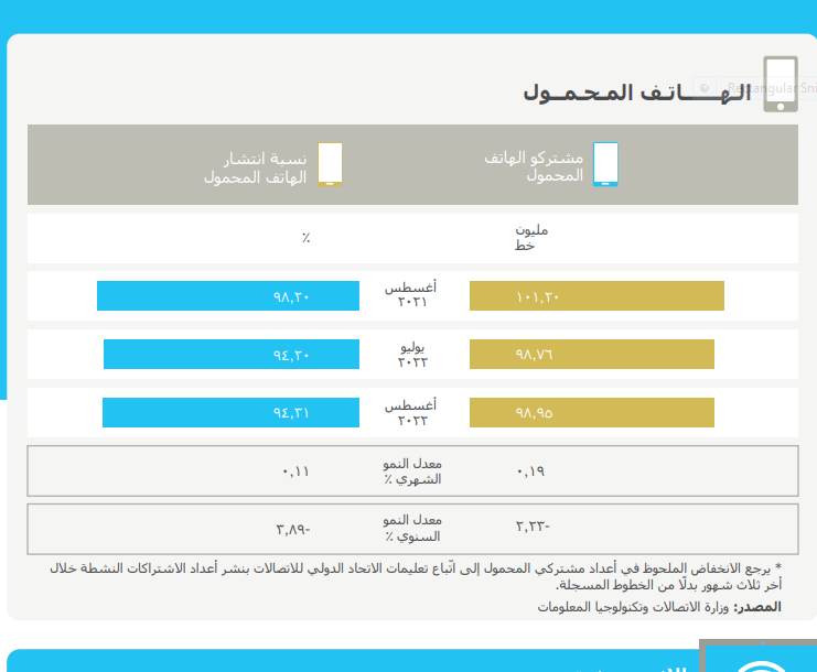 وأشار إلى أن التراجع السنوي في أعداد المشتركين يرجع إلى اتّباع التعليمات الجديدة الصادرة عن الاتحاد الدولي للاتصالات بشأن نشر أعداد الاشتراكات النشطة فقط، خلال آخر 3 أشهر بدلًا من الخطوط المسجلة.