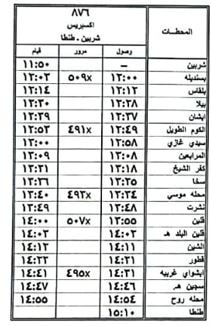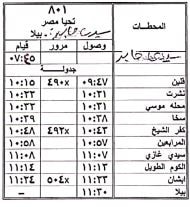 2 – تعديل ميعاد قطار 801 اكسبريس سيدي جابر / بيلا حيث يقوم من محطة سيدي جابر الساعة 7:45 يصل محطة بيلا الساعة 11:30 كالجدول المرفق.