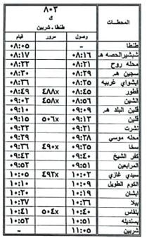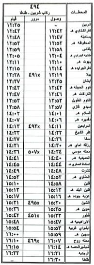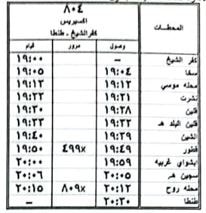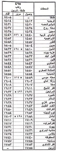 8 – تعديل ميعاد قيام قطار 495 ركاب طنطا / شربين حيث يقوم من محطة طنطا الساعة 14:05 بدلا من الساعة 13:55 ويصل محطة شربين الساعة 17:55 كالجدول المرفق .