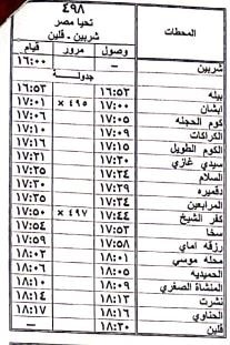 9 – تعديل ميعاد قطار 498 ركاب شربين / قلين حيث يقوم من شربين الساعة 16:00 ويصل قلين الساعة 18:20 كالجدول المرفق .