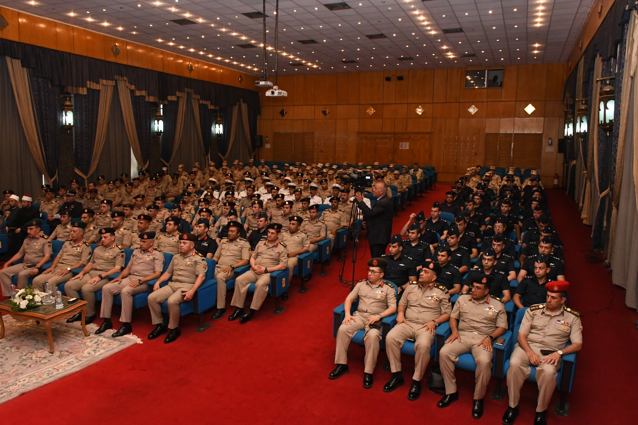 وألقى اللواء أ ح / خالد أحمد شوقى مساعد وزير الدفاع كلمة نيابة عن الفريق أول / محمد زكى القائد العام للقوات المسلحة وزير الدفاع والإنتاج الحربى أكد فيها أن رجال القوات المسلحة ماضون بإرادة قوية وعزيمة لا تلين فى حماية الوطن وصون مقدساته ، مقتدين بسيرة الرسول الكريم محمد صلوات الله عليه وسلامه فى الصدق والإخلاص والتضحية والصبر فى مواجهة التحديات ، والعمل الجاد بإيمان وثقة فى المولى عز وجل للوفاء بالمهام والمسئوليات المكلفين بها .