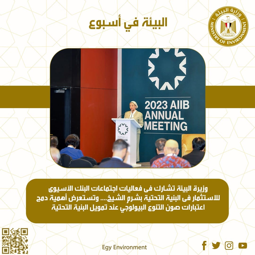 - الدكتورة ياسمين فؤاد وزيرة البيئة، تشارك في فعاليات اجتماعات البنك الآسيوى للاستثمار فى البنية التحتية بشرم الشيخ، والذى عقد بحضور فخامة الرئيس عبد الفتاح السيسى رئيس جمهورية مصر العربية ، وذلك كمتحدث رئيسى فى جلسة دمج اعتبارات صون التنوع البيولوجي عند تمويل البنية التحتية، بحضور وزير مالية دولة تونجا وعدد ممثلي البنوك، كبنك الاستثمار الأوروبي وبنك التصدير والاستيراد الصيني والبنك الآسيوي للاستثمار فئ البنية التحتية.وتستعرض أهمية دمج اعتبارات صون التنوع البيولوجي عند تمويل البنية التحتية، خاصة مع الأهمية الاقتصادية الكبيرة لخدمات النظام البيئي والطبيعة للدول الأفريقية والآسيوية، مما تزيد من أهمية الحفاظ على رأس المال الطبيعي، الذي يساعد في توليد قيمة اقتصادية تصل إلى ٤٤ تريليون دولار، اكتر من نصف اجمالي الناتج المحلي العالمي، وخاصة مع تزايد المخاطر المناخية وآثارها علي الاستثمار، وكذلك المخاطر المالية المرتبطة بالطبيعة فيما يخص الاستثمارات في البنية التحتية.