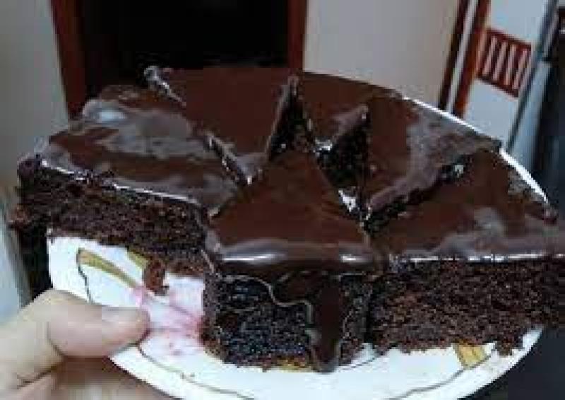 في صينية فرن، ادهنيها بعض الزيت مع رشة دقيق، ثم صبي خليط الكيك. اجعلي درجة الحرارة 180 واتركيها لساعة في الفرن. اتركيها تبرد ثم اقلبيها وضعي عليها الصوص الذي سبق حفظه في الثلاجة