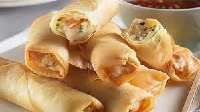 ضعي الحشو على طرف المربع و تلف مثل اصابع المحشي و يلاحظ دهن الطرف الاخر بالمربع بقليل من الماء لكي يقفل كويس و لا ينفك أثناء القلي