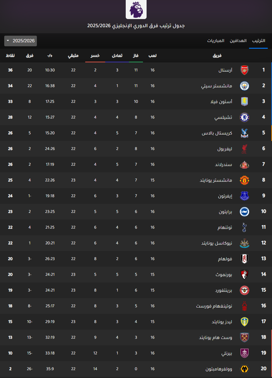 ترتيب الدوري الإنجليزي بعد فوز مانشستر سيتي اليوم