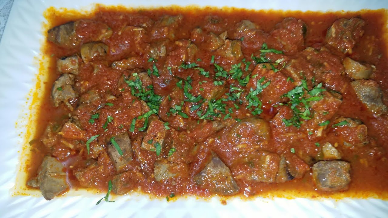 - ثم إضافة عصير الطماطم مع التقليب جيدا، ثم يتم تضاف الكبدة إلى الصلصلة وتترك حتى تتشرب جيدا.