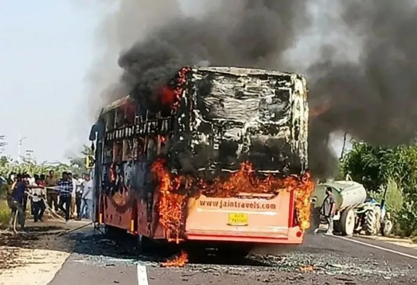 عاجل.. وفاة 10 أشخاص في حريق حافلة بالهند لهذا السبب