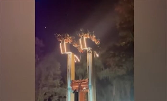 شهدت أحد المتنزهات الكبرى في ولاية تكساس حادث أربك الزوار، بعد توقف لعبة أفعوانية بشكل مفاجئ في الهواء، الأمر الذي أدى إلى تعلق شابين في الهواء على ارتفاع أكثر من 100 قدم بزاوية عمودية لمدة ساعة.